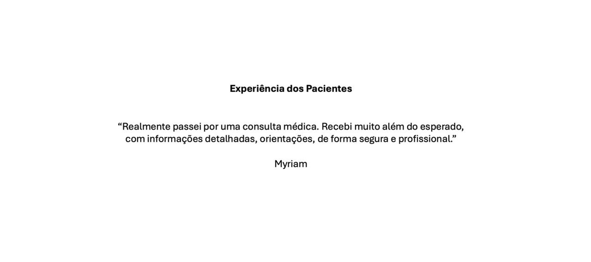 Atendo com foco em precisão, empatia e orientação clara para que cada paciente entenda seu diagnóstico e siga o melhor caminho de cuidado.